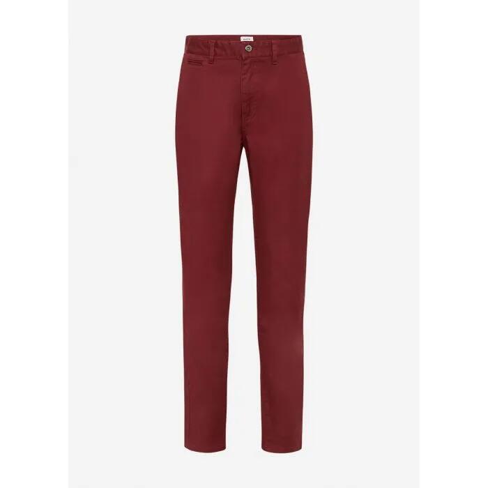 Offering easy stretch within washed cotton twill, these pants descend from a classic mid rise through a slim, flattering fit, to reveal effortless pairability in a rich redwood colouring. Fastening at the front with a button and concealed fly closure, the pants are further enhanced by belt loops