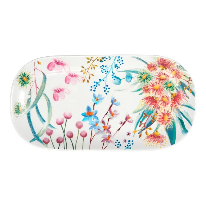 Serve every dish with elegance using the Maxwell & Williams Royal Botanic Gardens Eucalyptus Bloom Oval Platter. Designed in collaboration with the Royal Botanic Gardens Victoria, this hand painted platter showcases the beauty of native Australian flora and foliage.
