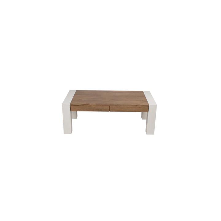 A 1.2m long coffee table that features antique oak colour and high gloss white crossover, perfectly match with our Kaitlyn ETU and Nora table to create the modern fusion theme, Higgins.