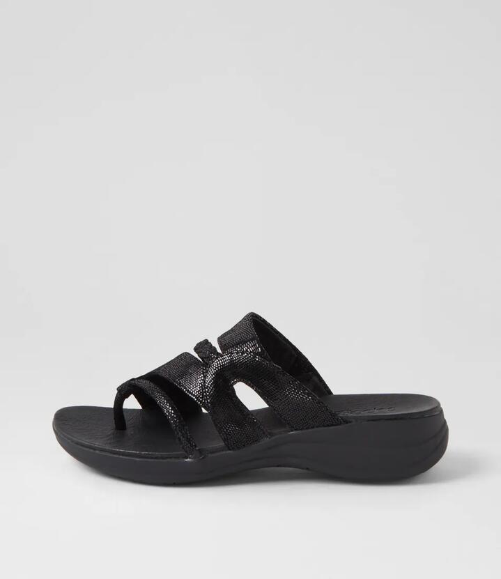 Mia2 Black Lizard Suede Slides