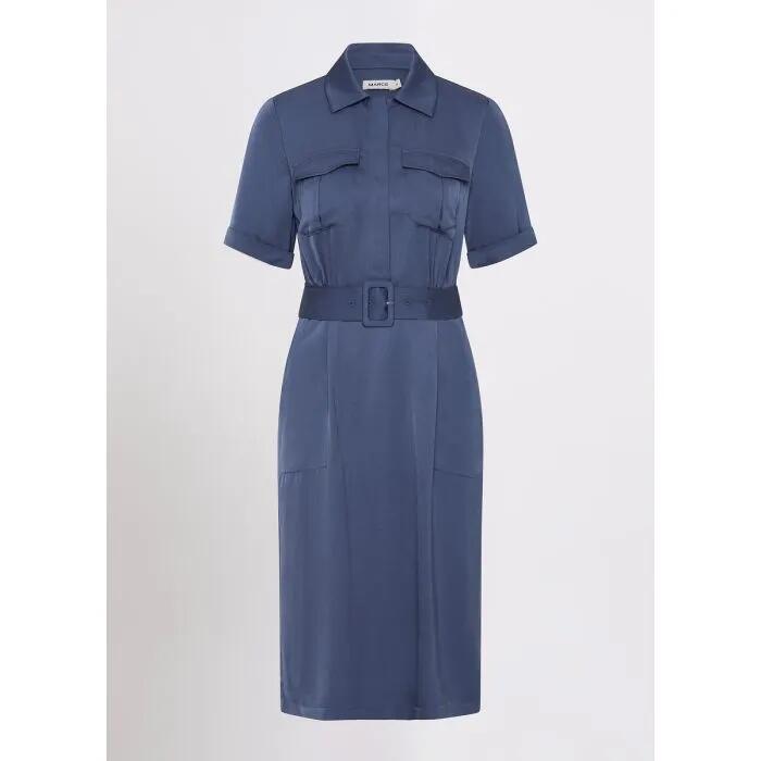 The Middleton Midi Dress by Marcs has a shirt-style silhouette with a softly structured shape. Featuring short sleeves, hidden front buttons, and a self-tie belt with a rectangular ring buckle, this piece boasts clean lines, easy length, and a made-to-wear-anywhere design.
