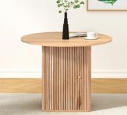 The Minami Natural Round Dining Table is an ideal choice for those seeking a balance of style and functionality in smaller spaces. Crafted with a solid fluted wood base and sturdy particle board top, this table offers dependable durability that can withstand daily use.