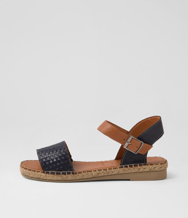 Mona Navy Tan Leather Sandals