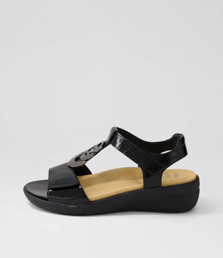 Navvon Xw Black Wrinkle Patent Sandals