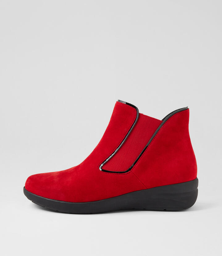 Nereus W Red Black Suede Patent Ankle Boots