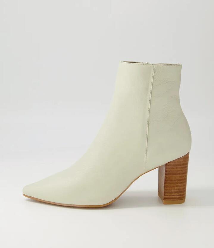 Nerine Stone Natural Heel Leather Ankle Boots
