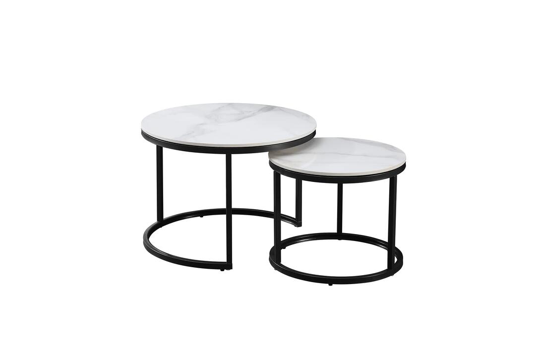 The Nesting Style Coffee Table in White on Black is a stylish and modern coffee table that will add a touch of elegance to any living space. The table features a set of two tables, one large and one small, that can be nested together for a space-saving solution.