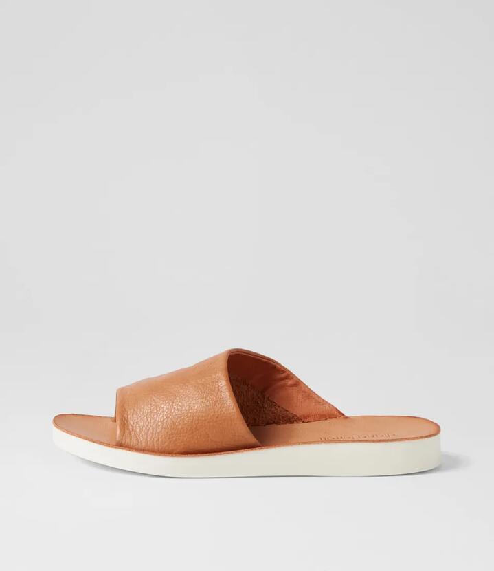 Nomen Dark Tan White Leather Slides