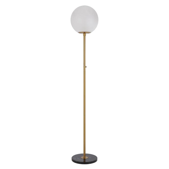 The Oliana floor lamp is elegant and ultra simple in design, suitable for any contemporary interior space. The glass is mouth-blown alabstro and supported on top of hand polished antique gold metalware which has a centrally located switch for ease of operation.