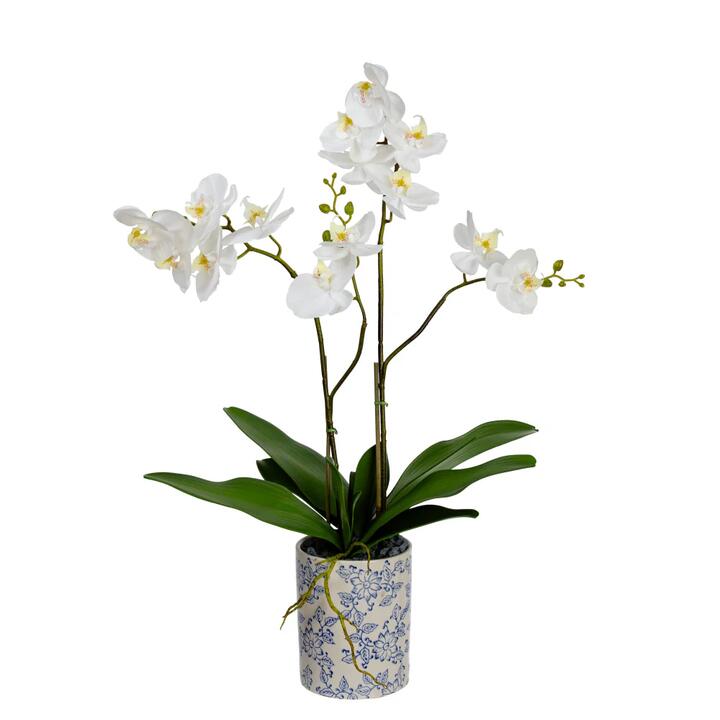 Bring a touch of nature into your home with this Orchid artificial plant. Designed to mimic the lush foliage and intricate details of a real Orchid, it creates an inviting atmosphere. The polyester, plastic, wire, ceramic materials ensure lasting vibrancy and resilience against wear.
