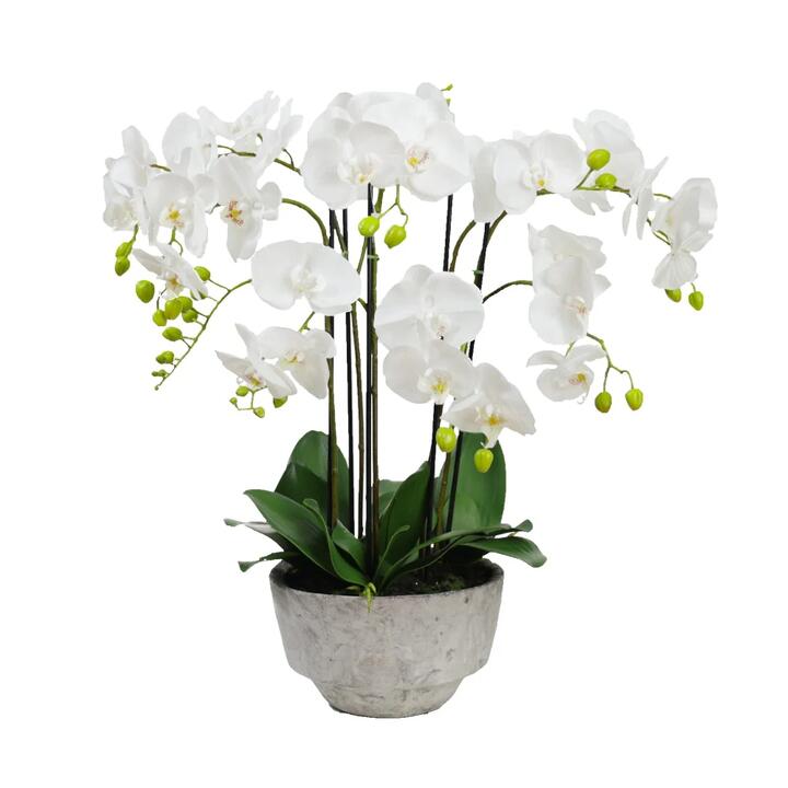 Orchid 78cm White Artificial Faux Plant Decorative Arrangement In Concrete