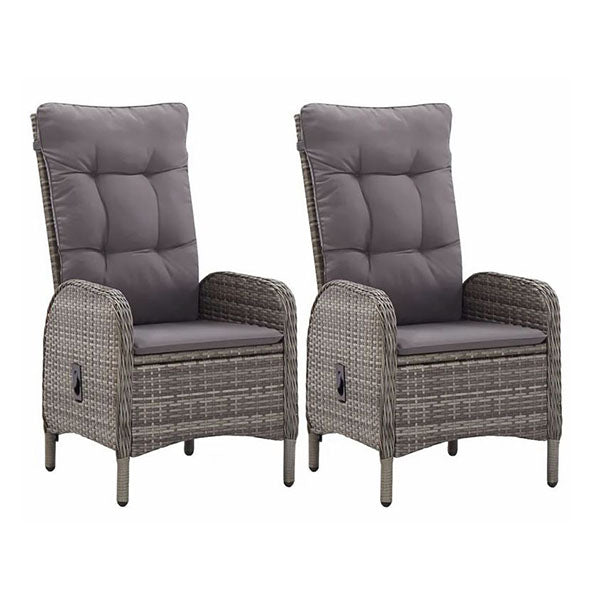 OUTDOOR CHAIRS 2 PCS POLY RATTAN GREY Add a hint of modern style with our poly rattan chair set. Capable of completing an outdoor dining set or standing out on their own, this chair set will make a statement in any setting.