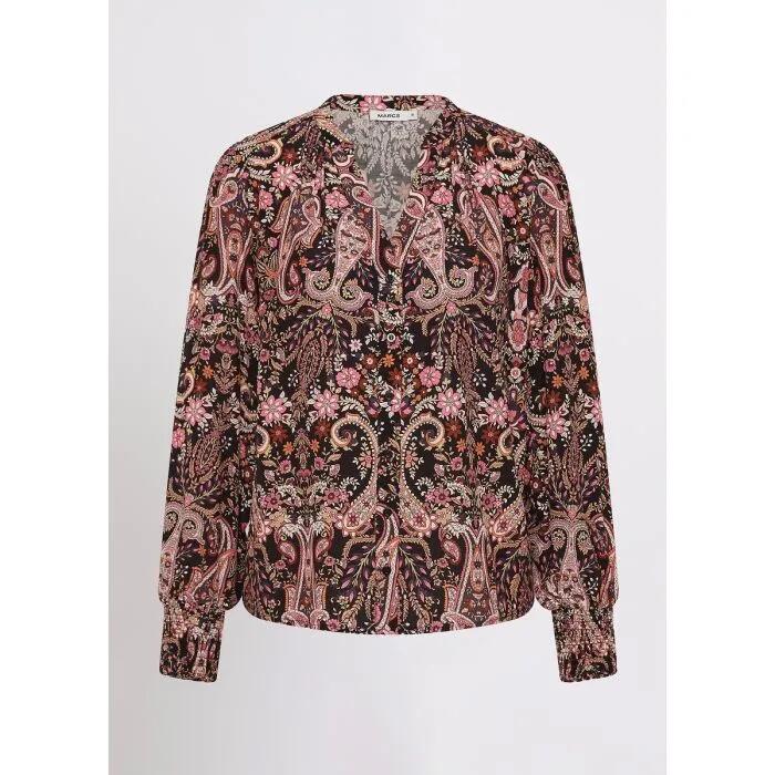 Elevate your wardrobe with the Paisley Town Blouse in Wine Multi. This stunning piece features a flattering V neckline and long sleeves, crafted from soft, delicate fabric for ultimate comfort. The elasticated gather at the sleeve ends adds a touch of elegance, while the Marcs logo front button f