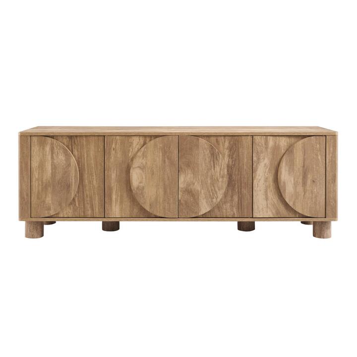 Bring warmth, texture, and contemporary character into your living space with this Woodgrain Lowline Entertainment Unit. Designed with soft curved detailing and a clean horizontal profile, this 4-door TV stand delivers both visual impact and practical storage.