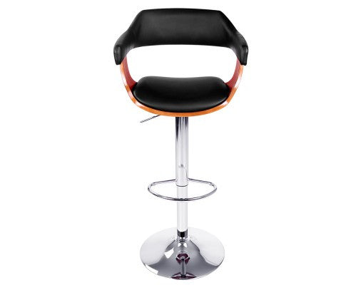 PU LEATHER WOODEN BAR STOOL Designed to blend in with any environment, this bar stool serves the purpose of providing seating comfort along with a neat, simple design. Featuring an elegant wooden seat structure and beautiful chrome gas lift lever, it will surely complement your modern décor.