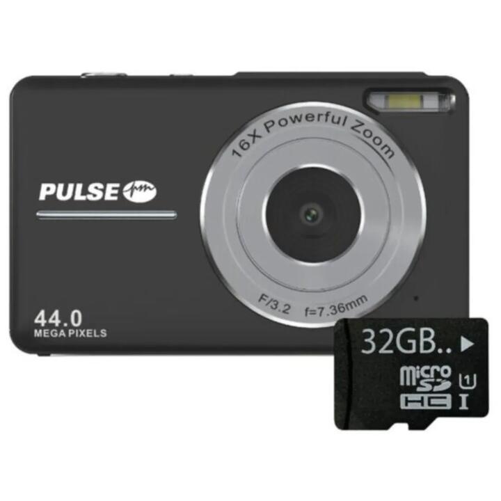 Technical Details: PULSE 44MP Digital Camera – Black The PULSE 44.0 MegaPixel 16x Digital Zoom Compact Camera is an ideal choice for novice photographers or as a handy pocket camera for spontaneous shots.