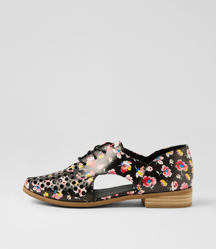 Quietly Black Floral Flat Shoes