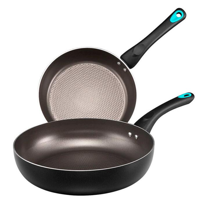 Create delicious recipes with Raco’s Zing Twin Pack Skillet. With their AeroLIFT 3-layer non-stick interior, even browning and easy cleaning is only a skillet away. Zing by Raco is designed to match any kitchen with their sleek black construction and blue accents, their durable construction