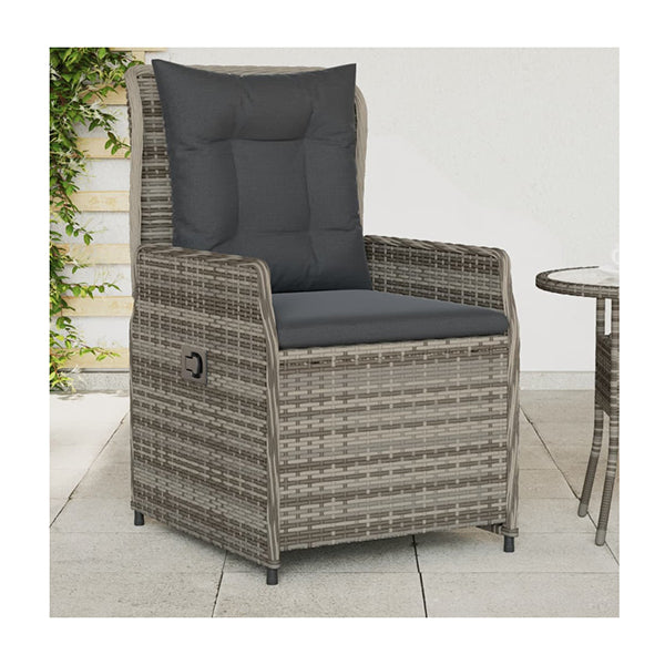 RECLINING GARDEN CHAIRS 2 PCS GREY POLY RATTAN Relax and enjoy the outdoors in these comfortable reclining garden chairs! Durable material: PE rattan, also known as poly rattan, is a strong, low-maintenance synthetic material that looks like natural rattan.