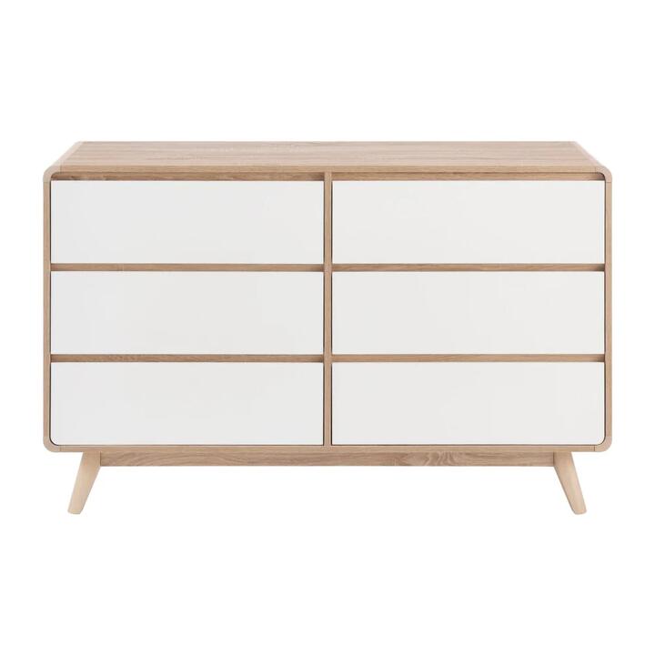 This chest of drawers is a stylish and functional storage option for your home. The mid-century inspired design is made with light oak wood veneer and features six drawers with seamless ball-bearing sliders.