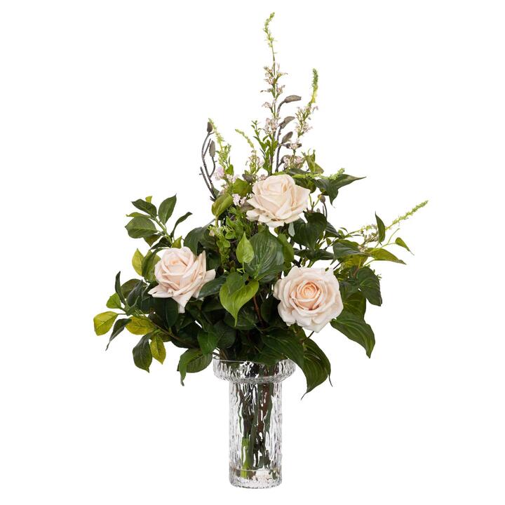 Rose Arrangement Artificial Fake Plant Decorative 70cm In Glass –