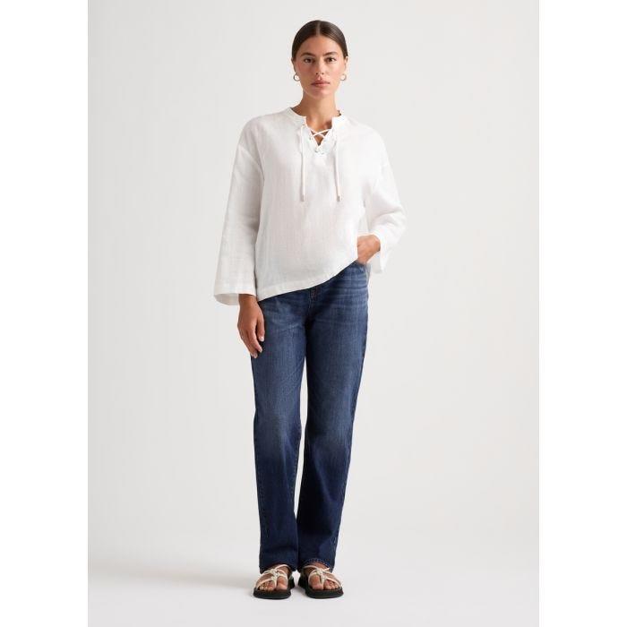 Your new favourite pair to wear almost anywhere, these high-rise jeans team a fabulously easy-wearing slim silhouette with a dark vintage wash. Relaxed in their shaping, the jeans move easily within pure Australian Good Earth cotton, to reveal additional detail in contrast topstitching, a classic