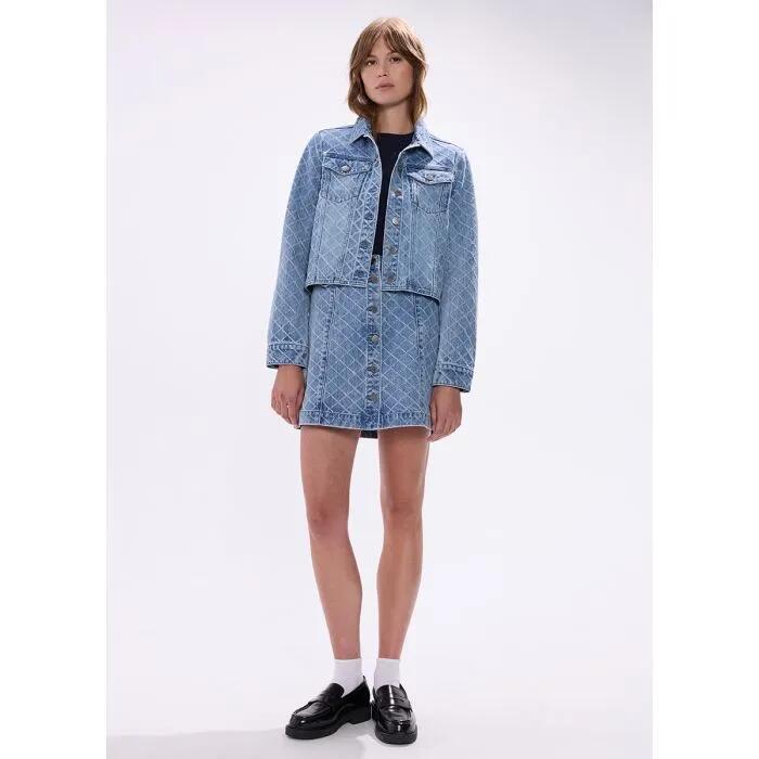 The Sally Denim Jacket in Light Blue brings texture to your denim collection. Etched geo pattern adds interest without shouting, while rigid cotton denim softens beautifully with every wear. Classic collar and patch pockets keep it timeless, but that subtle pattern makes it special.