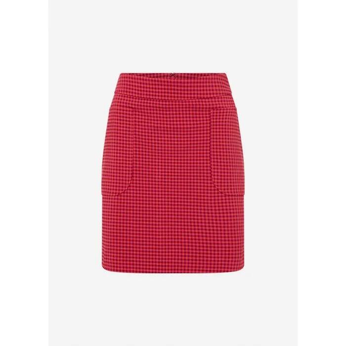 Moving easily within a stretch cotton blend, this cute mini skirt can’t help but turn heads, as it pairs shades of Oahu peachy-orange and dark Malibu red within an attractive gingham check. Fastening at the back with an invisible zip, the fully lined skirt creates a neat A-line silhouette f