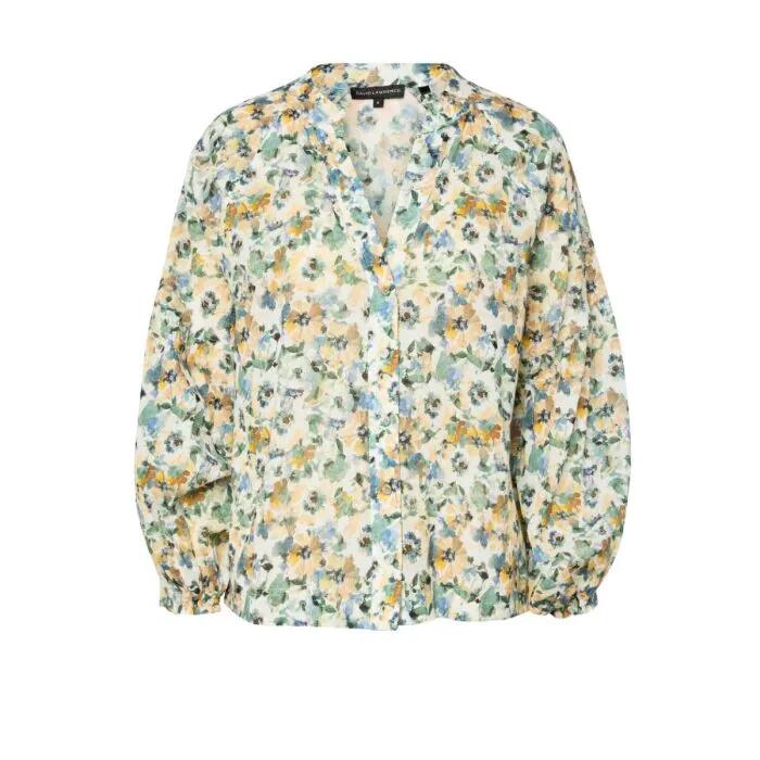 The Seattle Cotton Blouse in Sage Multi is a lightweight shirt crafted from softly textured crinkle cotton. Designed in a regular fit, it features long sleeves with delicate shirring detail and an open V-neckline with button fastening.