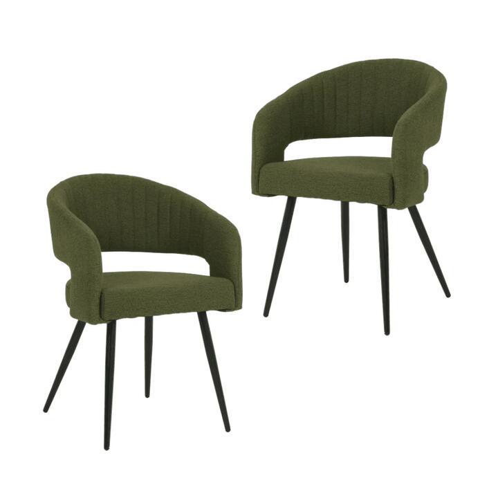 Set Of 2 Merril Modern Boucle Fabric Kitchen Dining Chair