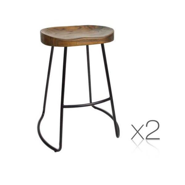 SET OF 2 STEEL BARSTOOLS WITH WOODEN SEAT 65CM Featuring a stunning vintage look perfect for industrial design lovers, this designer furniture piece will bring the industrial revolution into your home.