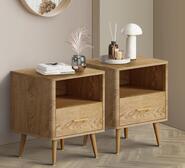 Enhance your bedside experience with the Set of 2 Vesta Natural Bedside Tables. These functional and convenient tables feature a vintage classic design, complete with an attractive woodgrain finish that adds rustic charm to your decor.