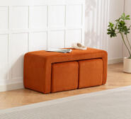 The Set of 3 Bamby Orange Corduroy Ottoman with Footstools is a smart and space-saving addition to your home. This multifunctional bench, wrapped in soft and textured corduroy fabric, offers both comfort and style, making it perfect for any living space.