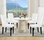 Enhance your dining experience with the Set of 4 Georgy White PU Dining Chairs. These chairs showcase a timeless design that easily complements any dining room decor, making them a smart addition to your home.