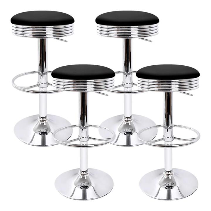 Set of 4 PU Leather Backless Bar Stools – Black