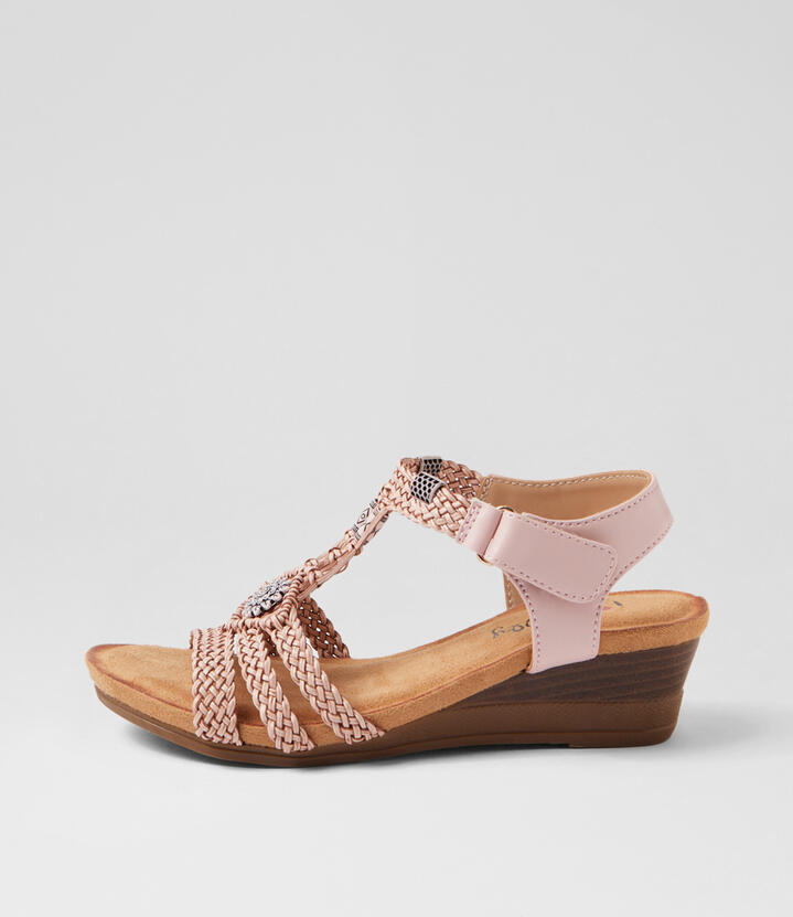Go coastal with these heeled sandals by I Love Billy. With braided straps and stacked wedge midsole, SHANTZY is an elevated take on a boho style.