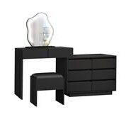 Start your day with ease and elegance using the Sinclair 8 Drawer Black Dressing Table Set with LED. This setup not only offers a generous amount of storage through eight solid drawers but is also designed for maximum efficiency, allowing you to keep your grooming essentials organized and accessi