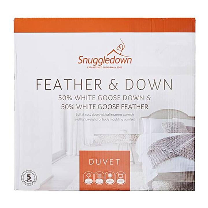 Experience the ultimate combination of comfort and functionality with the Snuggledown 50/50 White Goose Down Quilt! This soft and cosy duvet features a quality blend of 50% White Goose Down and 50% White Goose Feather fill for lightweight warmth for body moulding comfort through all seasons.