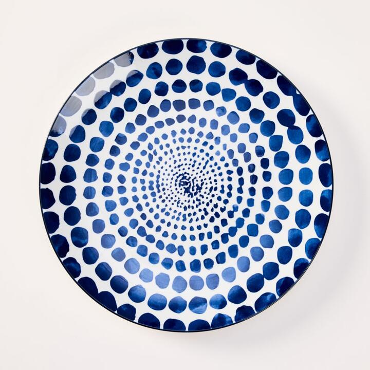 Celebrate your meals with the stylish Soren Yuko Dinner Plate. This beautifully crafted porcelain plate features an elegant blue dot pattern on a crisp white background, making it a standout addition to any dining table.