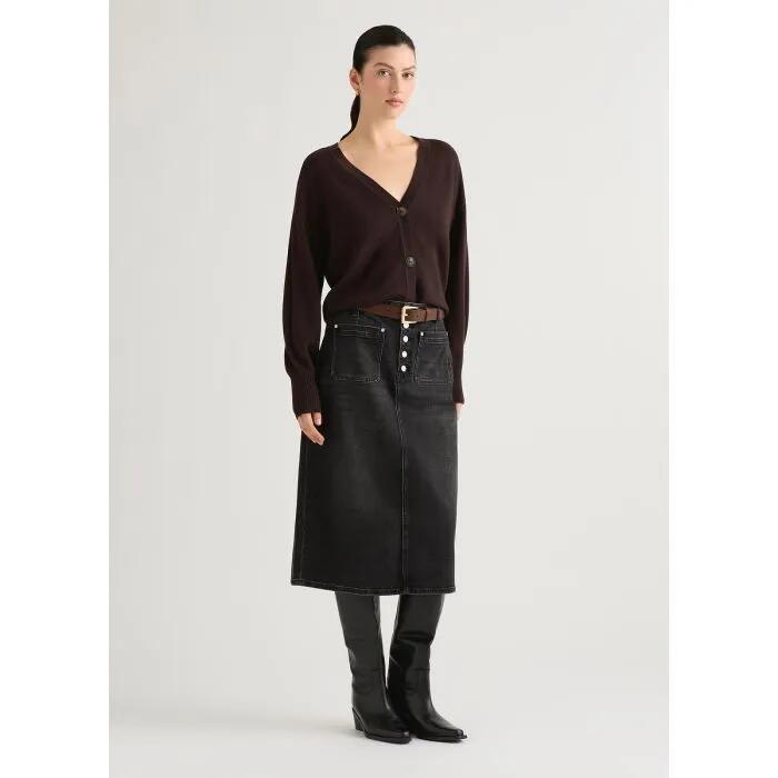 Elevate your wardrobe with the Spencer Denim Pencil Skirt in classic black, a versatile piece that effortlessly combines style and comfort. This midi-length skirt features a sleek pencil shape that flatters your silhouette, making it perfect for both casual outings and more polished occasions.