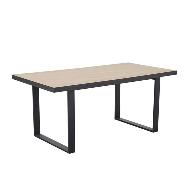 Enhance your dining area with the stylish 180cm Dining Table. This rectangular table features a warm natural oak wood finish paired with sleek black legs, creating a modern centerpiece suitable for any home.