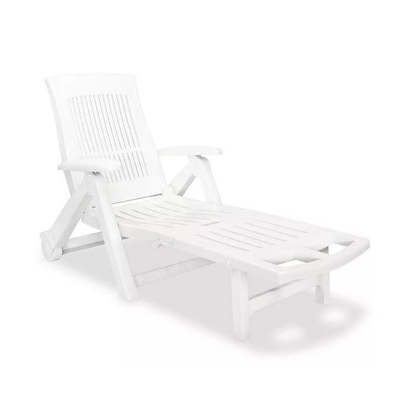 SUN LOUNGER WITH FOOTREST PLASTIC Take a load off on your patio, in your garden or any other outdoor living space on this attractive and durable sunlounger. This deck chair is made of high-grade plastic, which makes it weather resistant and easy to clean and it is easy to move around thanks to it