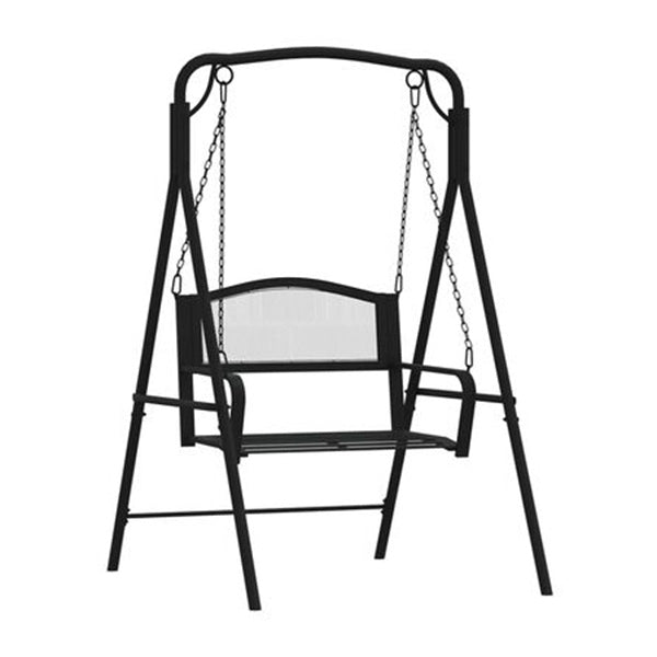 SWING BENCH 124 CM BLACK STEEL Take a load off in your any outdoor space on this classic metal swing bench. Swing function: You can hang the seat with included chains and then enjoy swaying on this hanging bench with a gentle breeze.