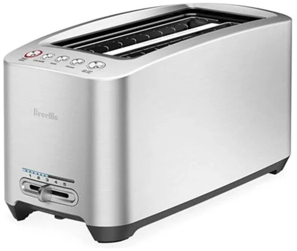 Breakfast is served with the help of the Breville The Smart Long Slot 4 SliceToaster Silver. Multiple controls ensure that you”ll get your bread just the way you like it. The Breville The Smart Long Slot 4 Slice Toaster Silver includes a button for toasting a bit longer, a lift and look fea