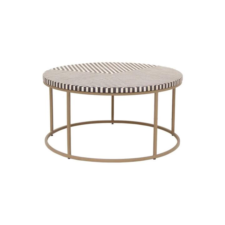 This coffee table has a refined, minimalist silhouette and is made with a centuries-old art form – bone inlay. It is handcrafted with ethically-sourced bone and has a monochrome hue. The brass coated iron base makes it a modern classic.