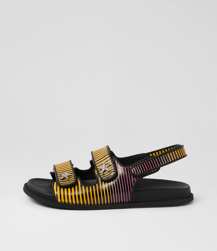 Titan Yellow Pink Stripe Leather Sandals