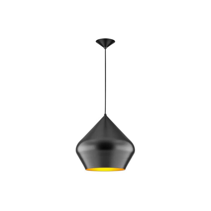 This light pendant features a golden inner layer that creates a warm, inviting ambience in any room. It is made of durable aluminum with a black matte finish and comes with an adjustable cord length.
