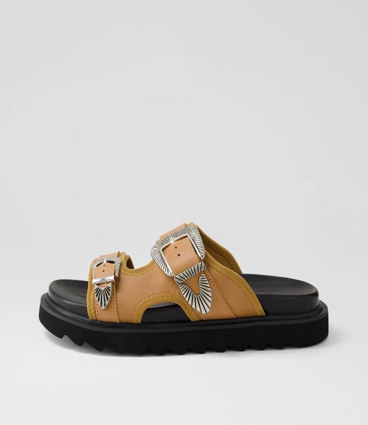 Rock a bold look with these casual leather slides by Skin. Channelling a Western aesthetic, TORES is an ideal style from dawn to dusk.