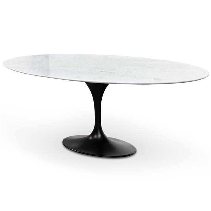 Tulip 2m White Marble Oval Dining Table – Black Base