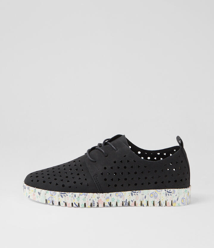 Usho Black Butterfly Nubuck Pu Lace Up Flats